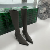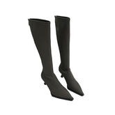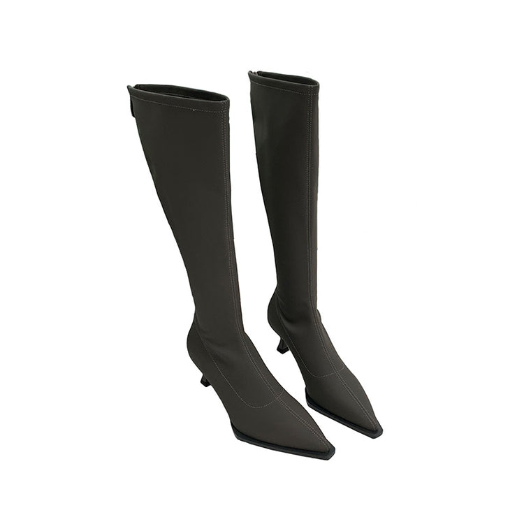 Pointed Toe Below The Knee Boots Back Zipper Stiletto Heel